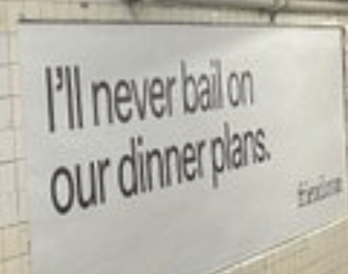 Slogan: "I'll never bail on our dinner plans"